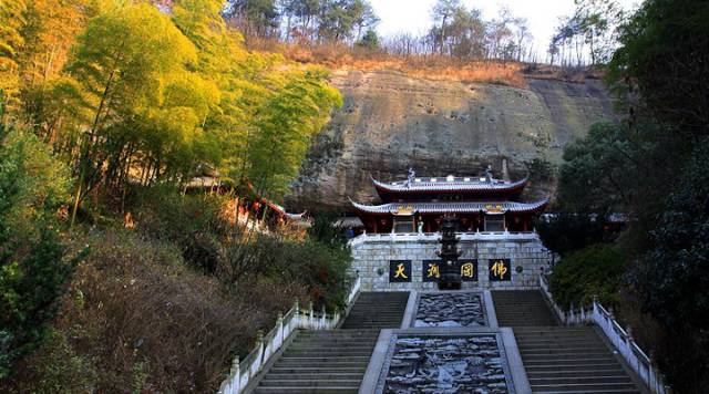 寺院依千层丹崖而筑,寺周松竹环抱,浓荫蔽顶。,因其万求万应的感应道交而享誉天下。
