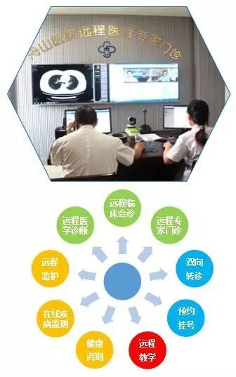 以舟山医院、市妇幼保健院等6家大医院为依托,构建由实体医疗机构通过互联网技术组成的线上虚拟“舟山群岛网络医院”。以云计算、物联网、移动互联网以及大数据技术作支撑,支持网络视频、音频同步,通过实时共享病历、诊疗和历史健康记录等信息,为患者提供病情分析、疾病诊断、确定治疗方案、预约诊疗和后续面向个人和家庭的健康监测、评估、咨询等综合性的新型健康服务。 目前,在舟山医院、市妇保院、市中医院、市二院、定海区中心医院、普陀医院共设立了6个远程医疗服务中心,下联50个远程医疗服务站点,开设了内分泌科、心脑血管科、精神科等13个远程专科,服务网络覆盖了全市所有公立医院、社区卫生服务中心和乡镇卫生院。