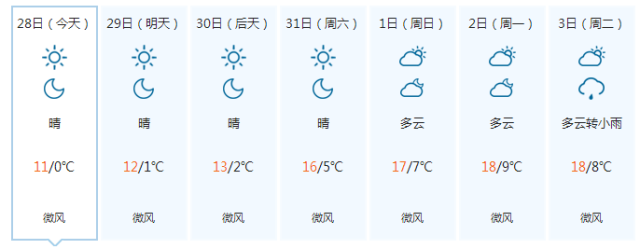 28~30日早晨全省气温较低,赣北赣中-1~1℃,局部山区-3℃左右;赣南1~3℃,局部山区0℃左右。