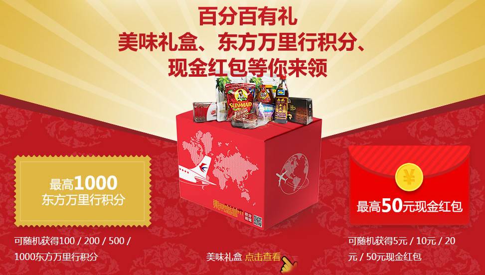 每次使用60东方万里行积分即可拆取一次年货礼包,每用户可抽取5次,百分百中奖。