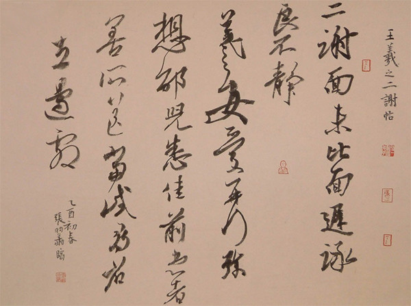 用心对待每一笔,并尽可能让每一笔的心态保持一致,万不可浮躁,须等心跳慢下来,再息神凝气片刻,方可开始。我在的办法是:坐下来不提笔就写。而是细读将要临的帖半小时左右之后,再濡笔蘸墨临之。临帖之始,当“专一”不移。仔细分析,身体力行,收获则会日积月累。关键是要找到一种 “感觉” !细致临帖,自己心里无数,则不易把字写好。