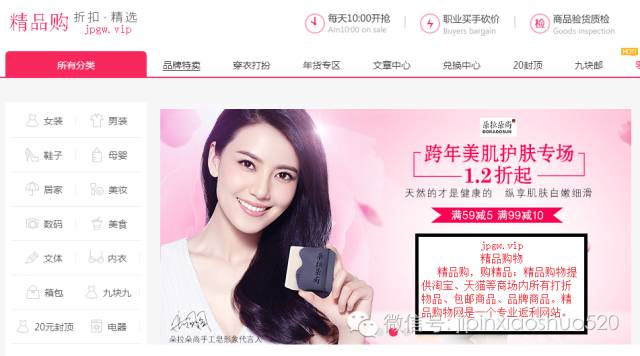5、精品购(http://www.jpgw.vip)是一个特价折扣、返利网站,汇聚全网最优质精品商品,每日精选千款超值折扣商品9.9元起,全场包邮,1折特卖,每天10点限时秒杀!精品购,够精品!