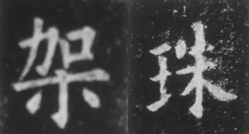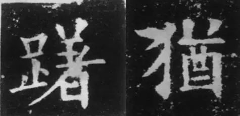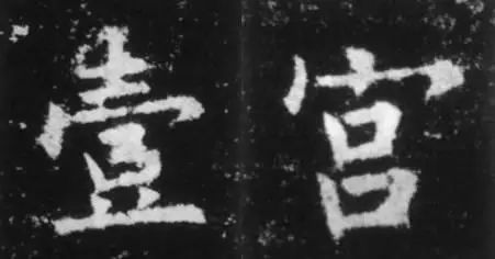 中心偏移后再重新对正,如“察”宝盖与下面“示”的中心对齐,而中间部分中心偏左;“青”上面与下面“月”里两横的中心对齐,《九成宫》里面这样的情况相当多,它形成独特的动感。学者要仔细揣摸。