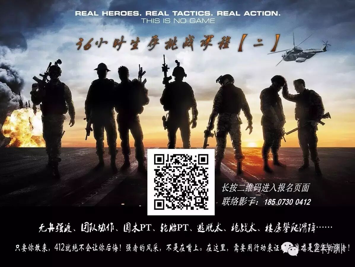 【内容】无舟强渡、团队协作、圆木PT、轮胎PT、逃脱术、枪战术、楼房攀爬滑降……