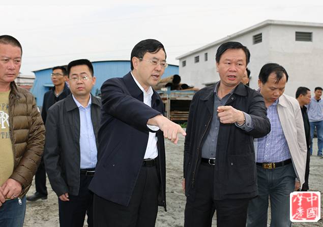 ▲(肇庆市委副书记、书记吴华钦在我市市委副书记、市长刘泾波、市政协主席欧爱民、市委副书记罗浩翔等领导陪同下深入敦煌印染厂等园区检查环保工作。)