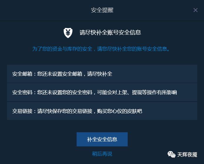 为了安全起见,建议首先补全安全信息。