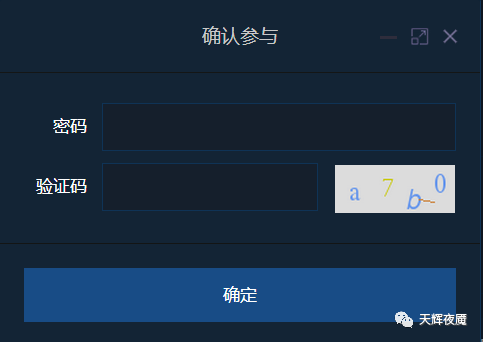 在弹出的对话框中输入第一步的参与密码和验证码即可: