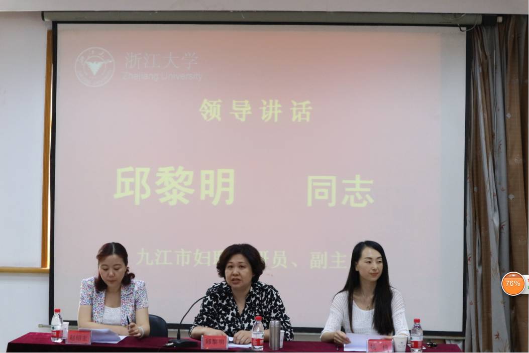 9月19日,九江市科级女干部培训班在浙江大学开班,来自全市各县区及市直单位70余名女干部参加了学习培训。浙江大学管理培训中心领导致辞,市妇联调研员、副主席邱黎明出席开班仪式并讲话,开班仪式由市妇联副主席赵绍宏主持。
