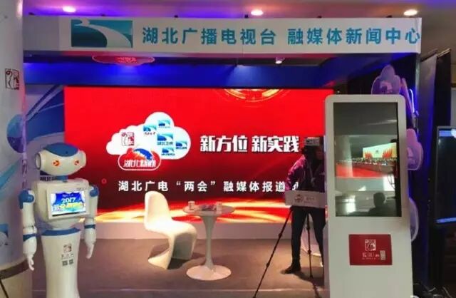 湖北广播电视台全新升级的融媒体新闻中心,通过机器人记者、云直播、影像志、全景地图、大数据等融媒体形式,对大会进行全方位、立体式报道。
