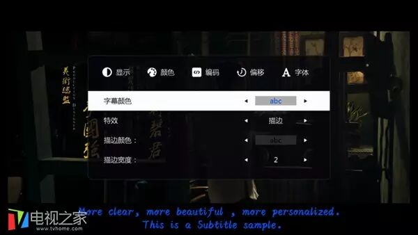 (三)普通字幕多样化调节管控,字母颜色和描边颜色二次开发,颜色柔和不刺激,讨好人眼偏好且不影响观影画面协调感