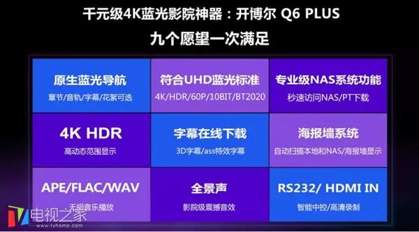 随着3月10日上午10:00开博尔Q6 PLUS(蓝光导航版)在天猫商城正式开售,这款引起众多烧友关注的业界首款千元级全尖端技术4K蓝光播放器众多功能逐渐浮出水面。开博尔Q6 PLUS是官方十周年纪念典藏版系列的入门级产品,相比其前辈Q10 PLUS和K9 PLUS,其在部分功能和产品设计上均有较大程度的变化。幸运的是,类似于4K HDR、海报墙、字幕在线下载的核心“黑科技”功能在开博尔Q6 PLUS都得以完美保存。此外,该款机型以外的配备了原生蓝光导航功能。