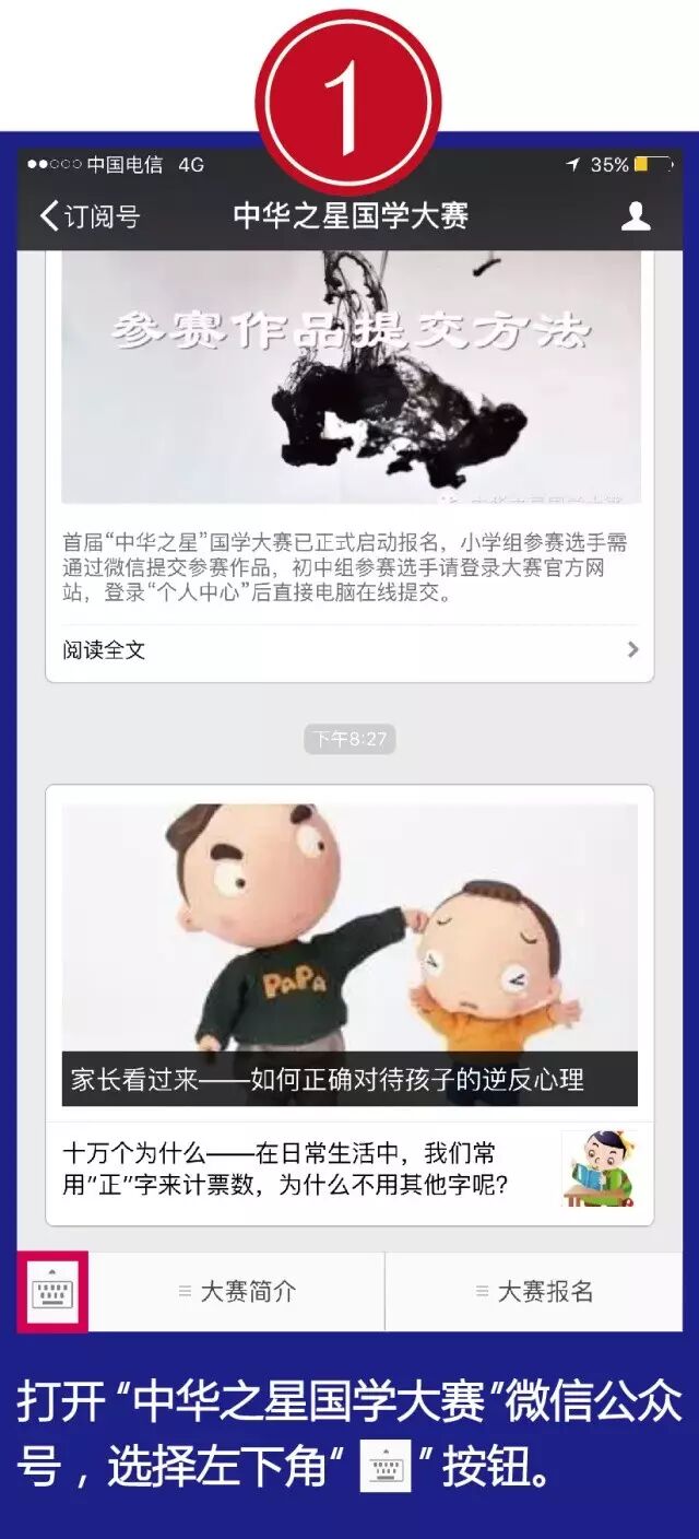 关注大赛官方微信(微信号:guoxuestar),按下列流程进行提交即可。