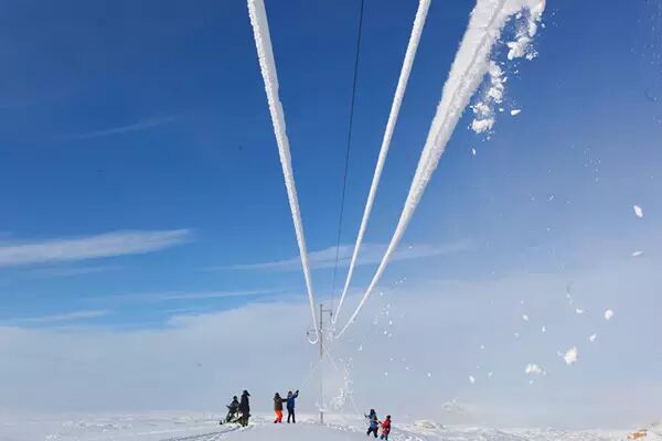 12月10日,阿勒泰供电公司应急抢险小组清除线路覆冰。