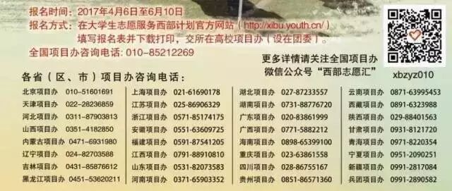 另外,关注“西部志愿汇”微信公众号:xbzyz010,点击“我要报名”也可以手机报名!