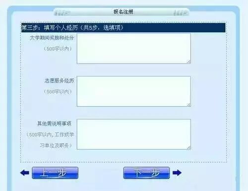 下面正式进入报名注册环节。报名注册共五步,第一步注册用户,填写自己的密码后,点击下一步。