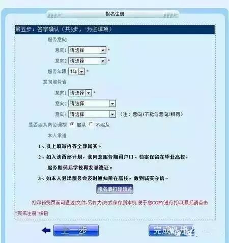 填写完后(注意:带“*”的为必填项),点击报名表打印预览按钮,如果查看无误后,可通过(文件-另存为)方式保存到本机,便于您COPY进行打印,最后点击“完成注册”。注册完成后把打印出来的报名表交到学校(学院)团委审核、签字、盖章。报名工作到此结束,等待学校通知。
