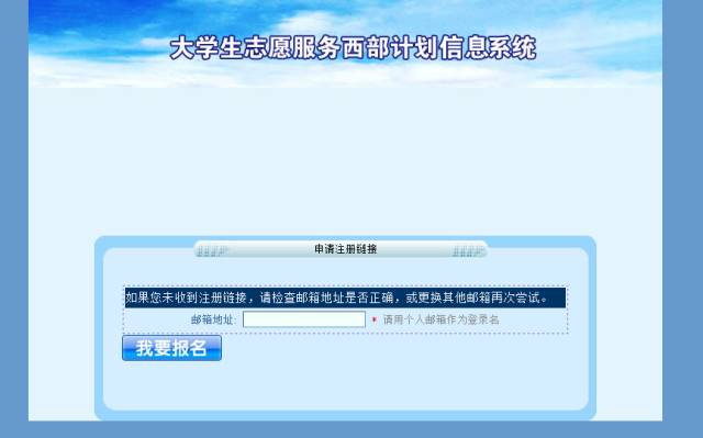 点击右侧下方的“志愿者报名”进入申请注册链接页面,填写邮箱地址完成申请注册链接