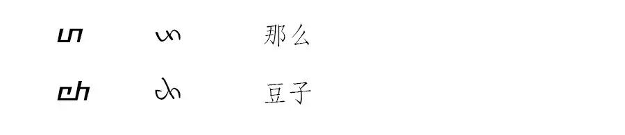 音节 dde 和 ddu 也要连在一起,它们的笔顺是: