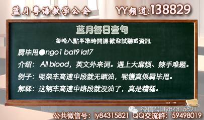 更多粤语课程到YY频道138829或蓝月在线课程网页观看。