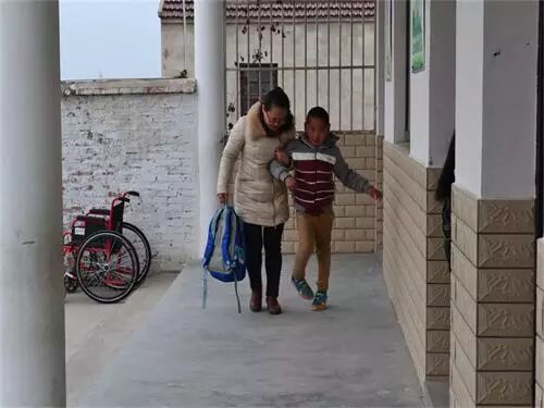 【画外音】3月2日早晨,自小残疾的荣荣被家长送到学校大门口,值班的董珺芬校长连忙接过书包,搀扶着送他进教室。在方向小学,这样的镜头每个工作日都会出现,只不过搀扶的人不断变更,昨天是钱鹏群老师,明天是周玉春老师……几乎所有的老师都曾做过荣荣的拐杖!