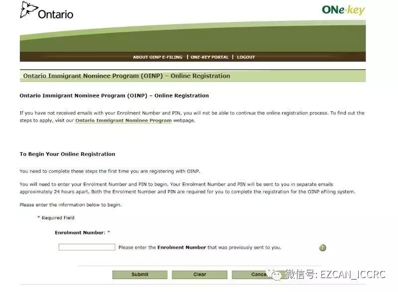 Please note: Some users of the OINP eFiling system are being redirected to a ONe-key page asking for an “Enrollment Number and PIN”. This is a system error.