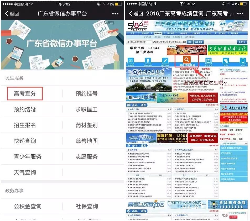 除了通过“广东发布”,小伙伴们还可以通过网站在线查询方式获取自己的高考分数哦~考生可登录广东考试服务网(http://www.5184.com),按提示操作即可查询高考各科成绩。