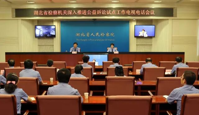 △ 图为湖北省检察机关深入推进公益诉讼试点工作电视电话会议现场