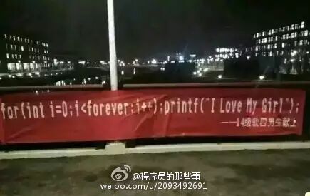 @王小二二二二二二二二二二二二:for语句后有个分号,如果for 中的forever 理解为永远,那么就是永远也不会说我爱你?还是“爱你在心口难开?”(i love you more than i can say).但是计算机中没有真正的无穷大,只是一个很大的整形数而已,等到循环结束就要printf了