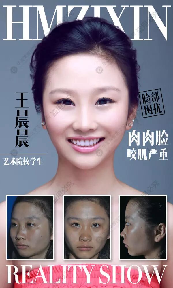 五官基础较好,单纯的咬肌肥大让面部线条看起来过于僵硬, 缺乏女性特有的优美感,经过瘦脸针瘦咬肌,让面部曲线更立体柔美。