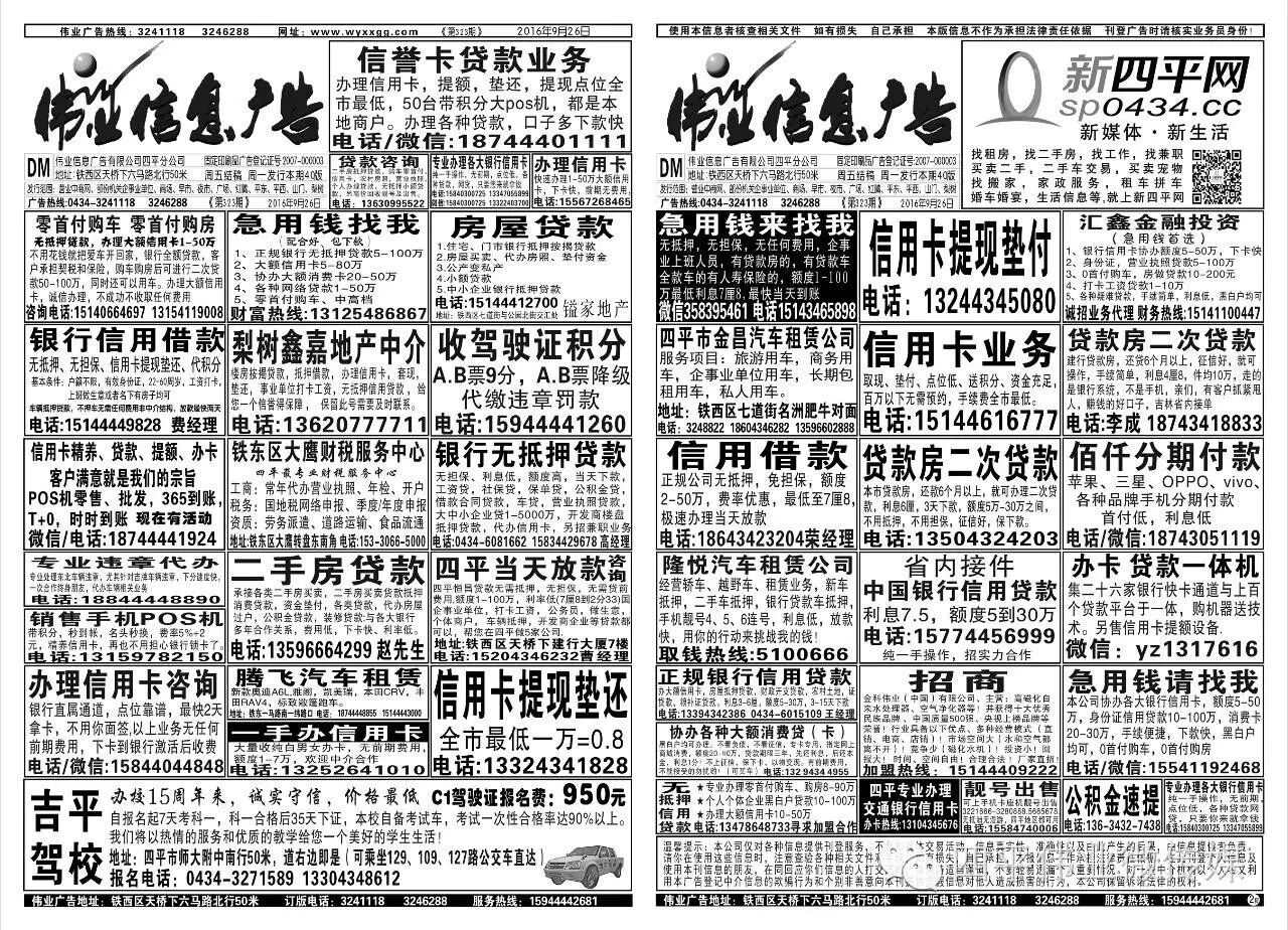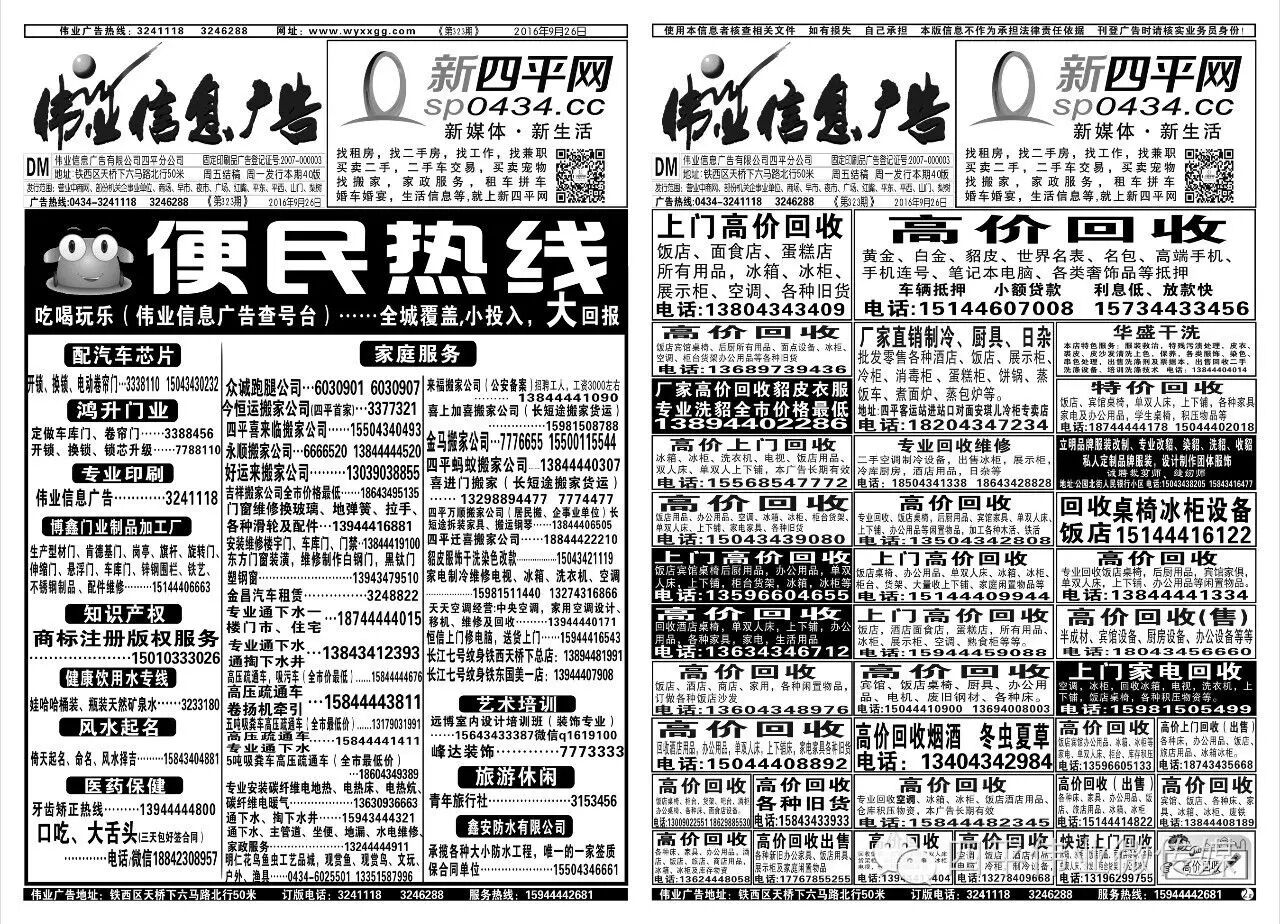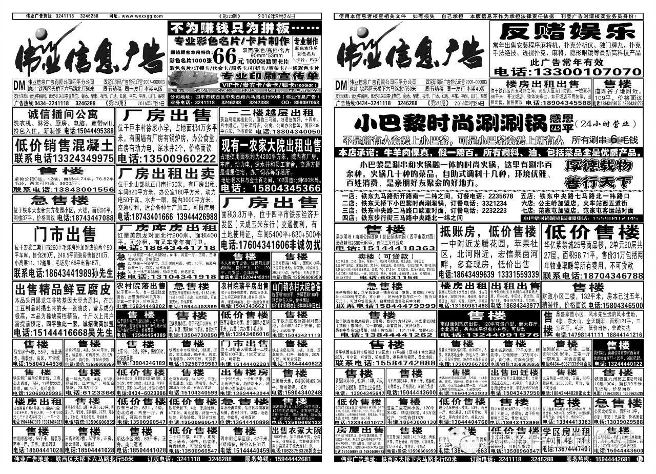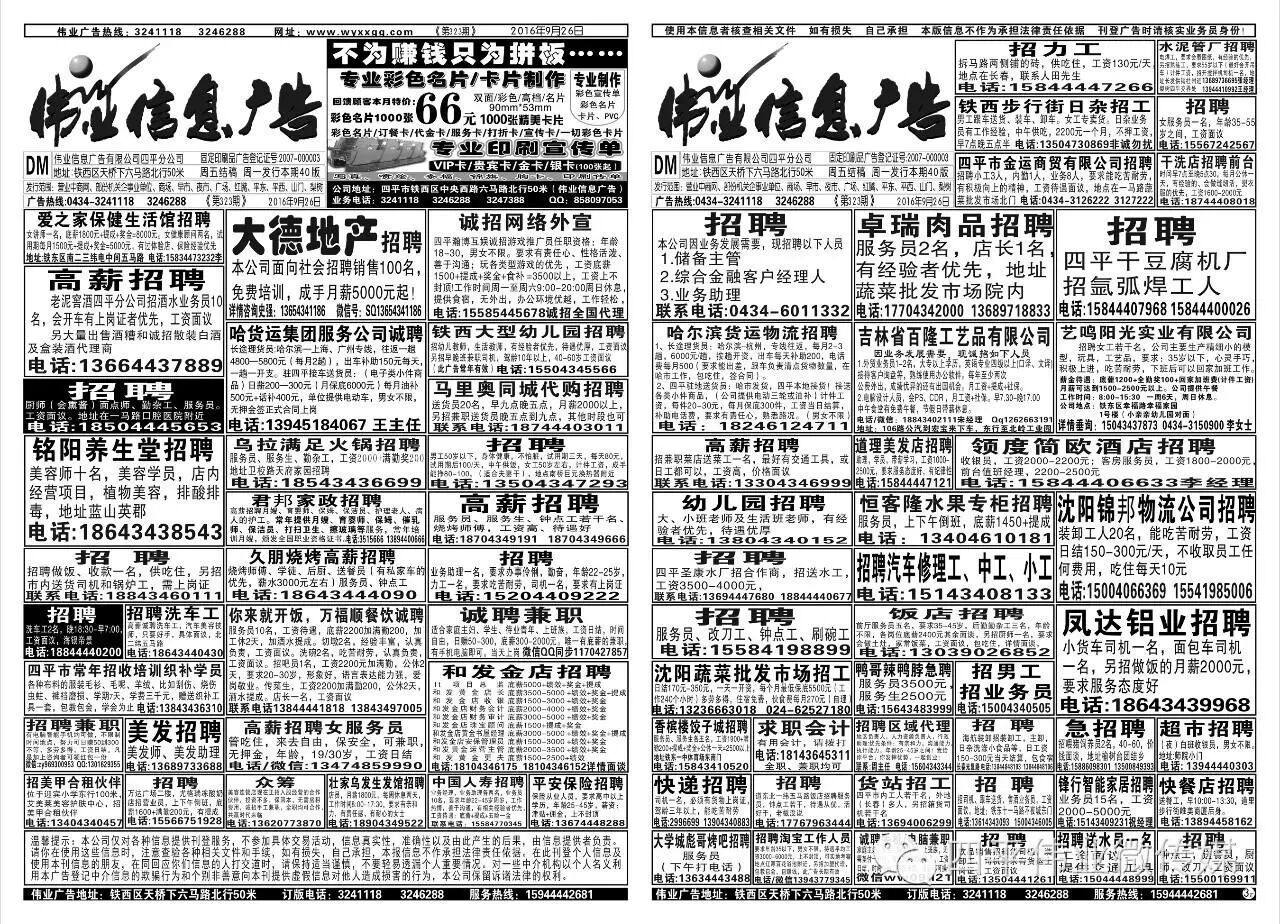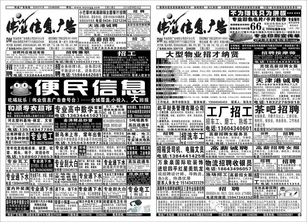 四平伟业信息广告热线合作请加微信15944442681