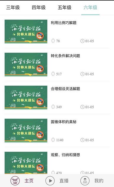 《名师大讲坛》每堂课讲解一个知识点,每天一道练习题,在线答题,配套讲解,每天五分钟,让你一周掌握一个解题方法。栏目课程与《小学生数学报》同步。