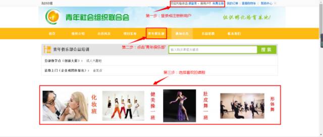 注册账号,点击进入青年俱乐部页面即可选课报名!