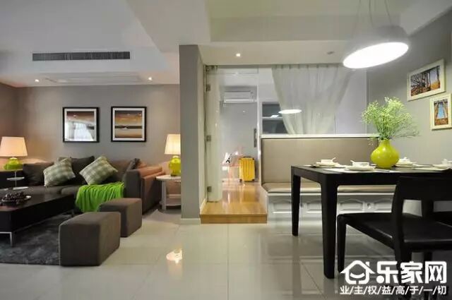 ►客厅电视背景墙黑色为主,悬挂式样的电视节省了更多的空间,下面的插座井然有序,家里装修的时候一定要提前设计好线路。在这里给你说个秘密,打扫卫生的时候真是省心了,不用每天都清洁一遍了,哈哈哈!►客厅和餐厅之间通透设计,风水大师说对家人身体不好,所以设计了一个半遮挡的隔断,主要是为了餐桌边的卡座式设计,节省了更多的餐厅空间。►在这里就可以明显的看出了隔断的妙用,让餐厅和客厅两不耽误,又能合二为一,这招设计真是太绝了,我家装修一定也这样设计。前面就是书房了,在家里工作就是优雅、舒适。