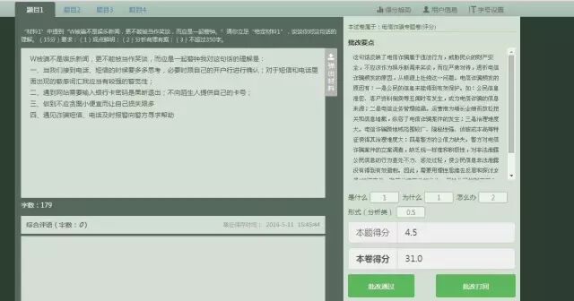 4、答案的内容上,第一,答案不符合题目要求“观点明确”,而是用一句长话含糊其辞的表达观点,在此类题型中,第一句话也就是观点,基本决定了此题给阅卷老师的第一印象。第二,缺少题目要求的“请谈谈你的见解”。这部分考官是考察考生解决问题的能力。(占此题分数的三分之一)。我的答案基本是照抄材料的,不能算作见解。最后就是仔细审题,不要掉进题目陷阱中。