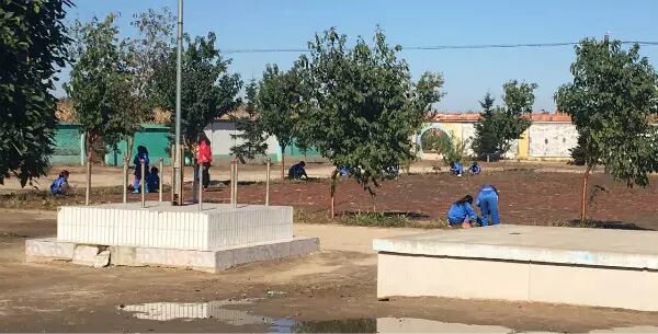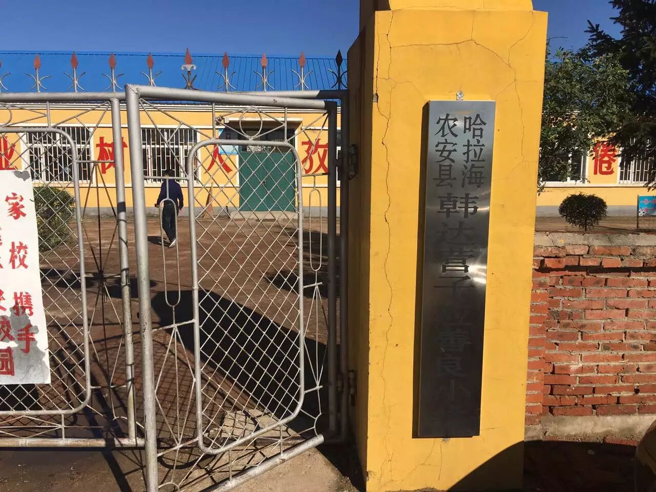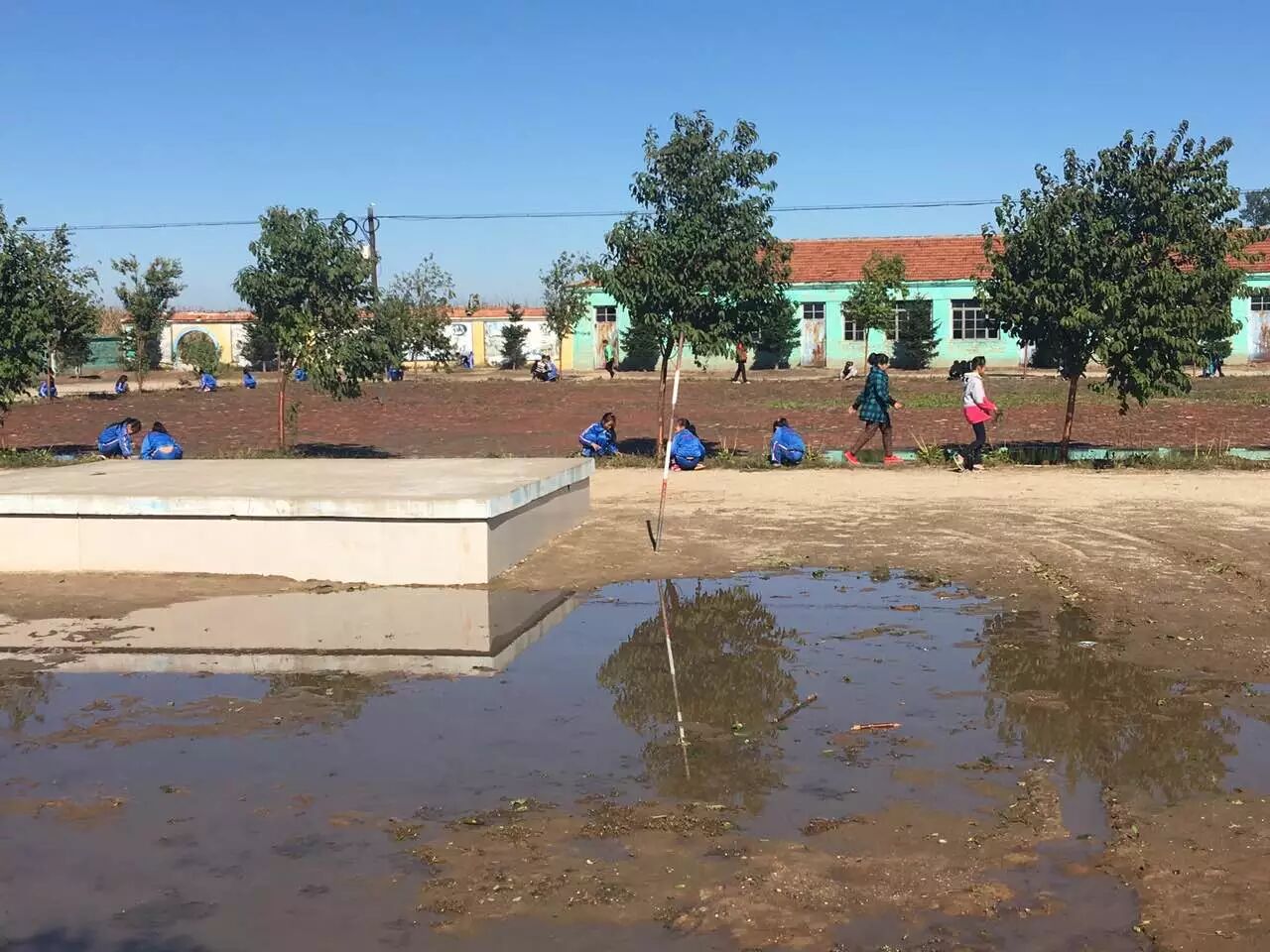 今天出发的比昨天略晚一点,天气也放晴,感觉暖和许多。但还是因为昨天的大雨,一路上还是看到了很多雨水留下的痕迹,到处都是泥水。一行人在90分钟的路程中到达了第一所学校,韩达营子小学。看到大门后,并没有想象中那么破败,和昨天的学校相比,韩达营子小学的条件算是很不错的,教室比较新,不过锈迹斑斑的铁门和泥水混合的道路还是体现出学校的情况比较困难。