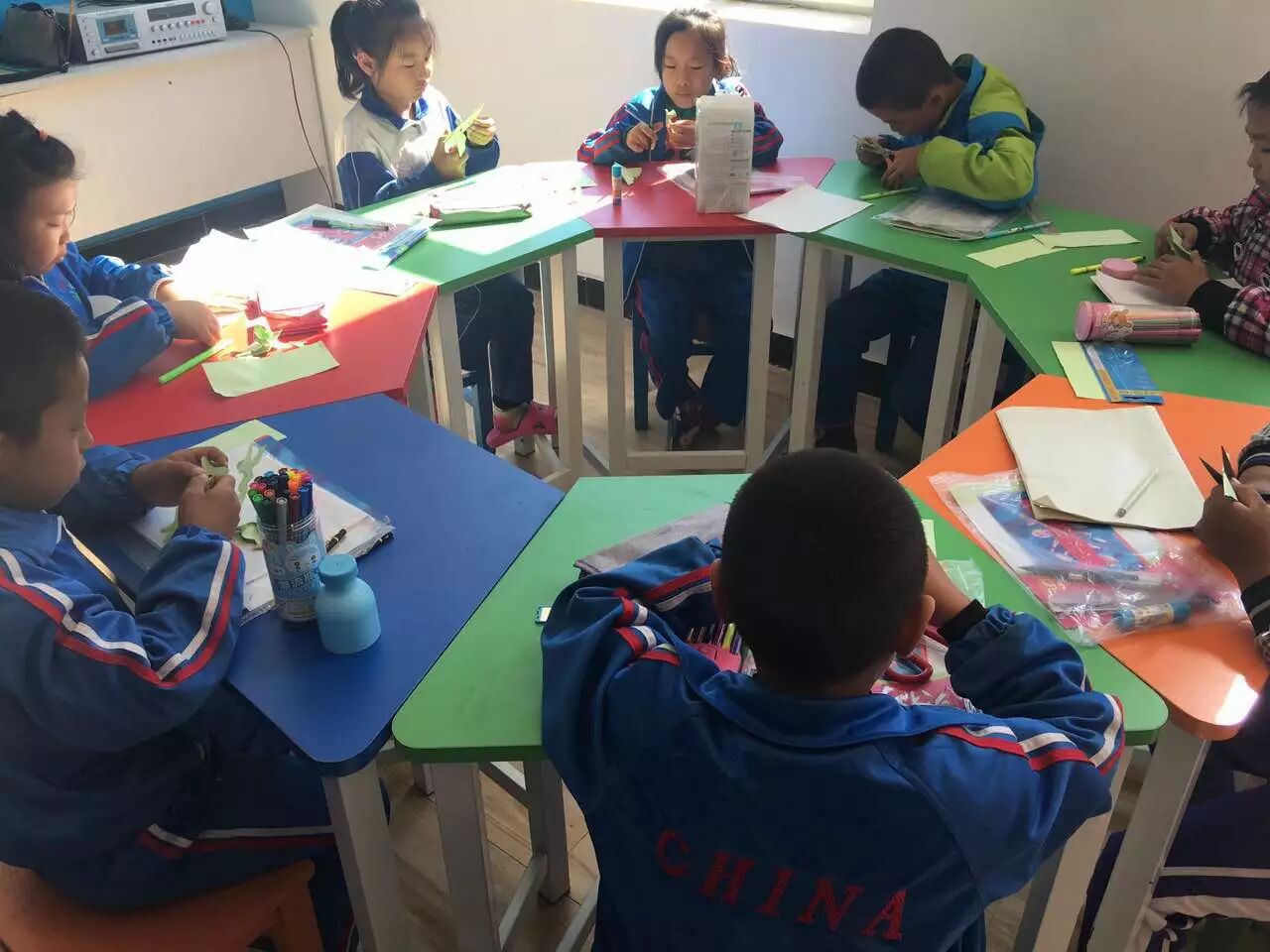 我们到达的时候正好是学生们课间活动,孩子不是很多,在老师的带领下在操场除草,运动。他们都很开心,每个人脸上都洋溢着笑容。9:50我们开始了美术课程,因为本学期刚刚开课两周,学生们跟老师的感觉还不是很熟悉,显得有些拘谨,但在陈老师的指导下,还是顺利的完成了课程,每个学生在下课时都有了一件自己的作品。