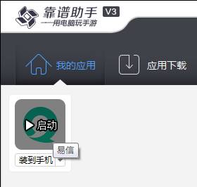 安装好易信之后,下面就是启动一下易信。那么,靠谱助手就会开始运行安卓模拟器,然后再运行易信了。如下图所示: