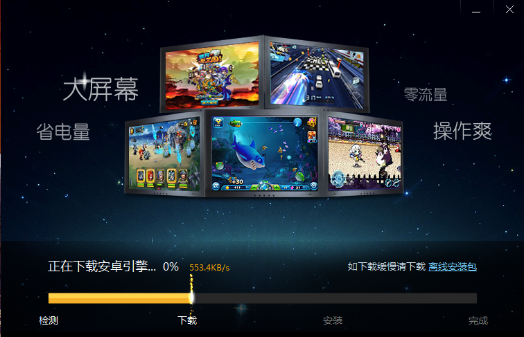 下载好之后安装到电脑上,刚开始安装这个靠谱助手的时候需要下载很多的安卓系统引擎之类的文件,比较大,也是在线下载的,所以需要等一段时间,如下图所示: