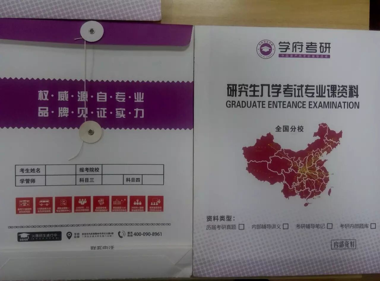 校区配有学府考研自主出版公共课图书、各专业课图书、高端学员学习档案、专业课资料档案等