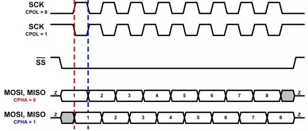 如果CPHA=1,数据在SCK的下降沿读取,在上升沿变化。