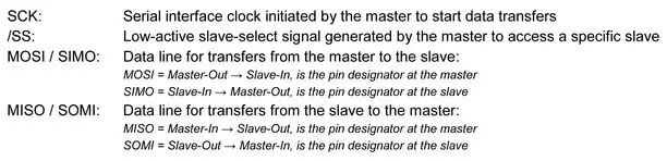 虽然表1中的引脚名称来自摩托罗拉开发的SPI标准,但具体集成电路的SPI端口名称往往与图1中所示的不同。