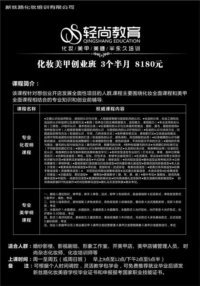 除了化妆美甲创业课程,轻尚还有众多实用的美妆课程可以选择!