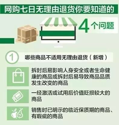 黄健英律师说,哪些商品可以七日无理由退货,哪些不行?商家与消费者争论不休。《办法》进行了规范,明确不用于七日无理由退货商品的范围,包括消费者定作的商品;鲜活易腐的商品;在线下载或者消费者拆封的音像制品、计算机软件等数字化商品等七类商品。