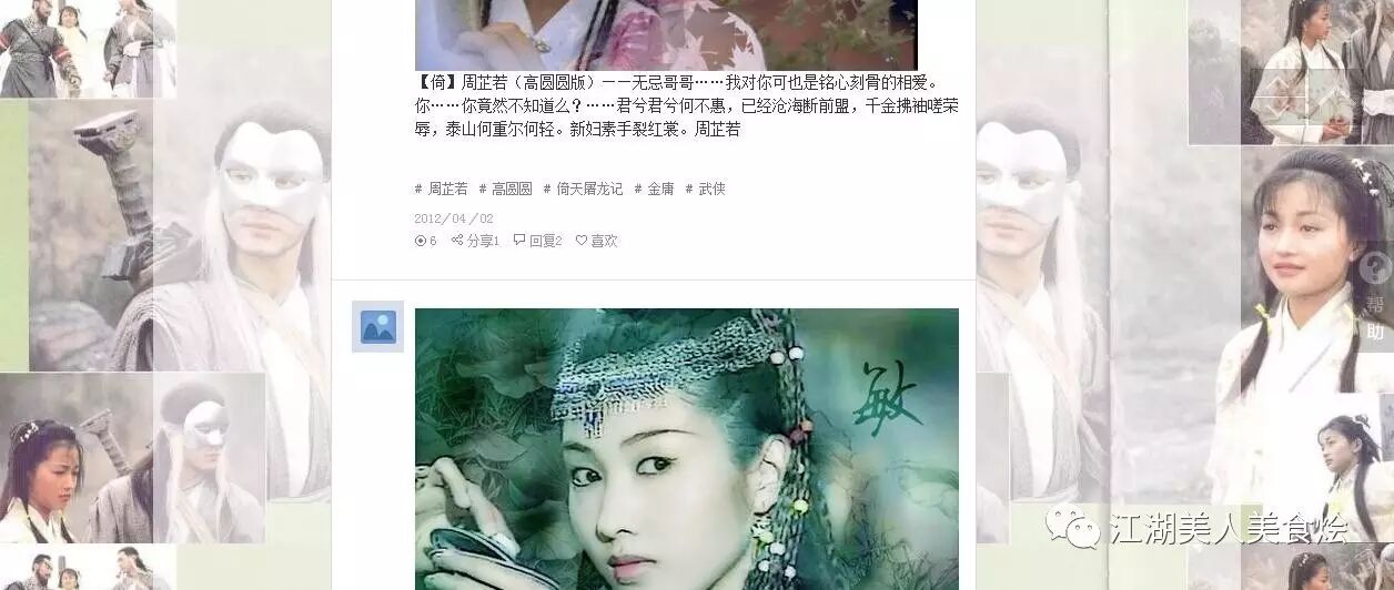 学生时代,我在人人网上有一个人人小站,名字就叫金古黄梁温,背景图是小襄儿跟她的神雕大侠(写李绮红的那篇文章,也引了那张图,可见我对它的喜爱程度),已多年不去打理,点进去一看,居然还在,也算是一段青葱岁月的见证吧。