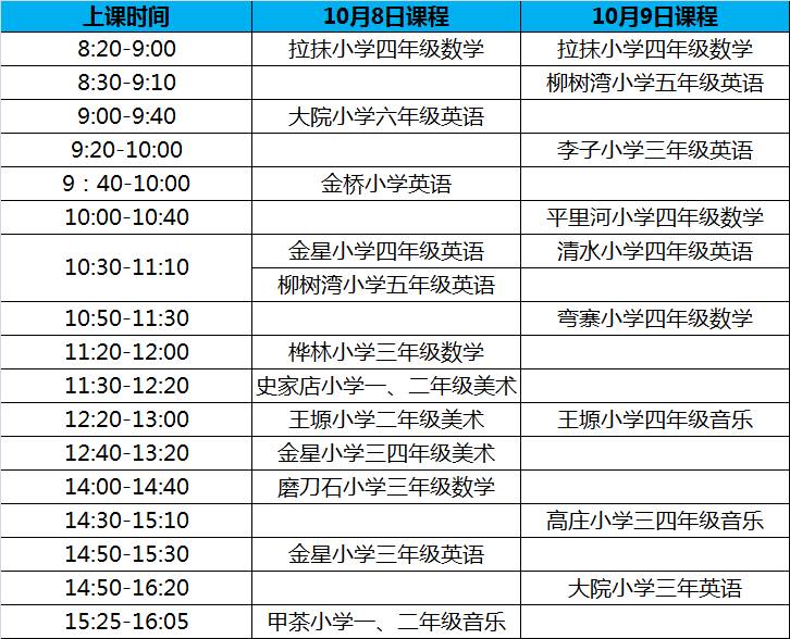 以下为10月8日、10月9日课表