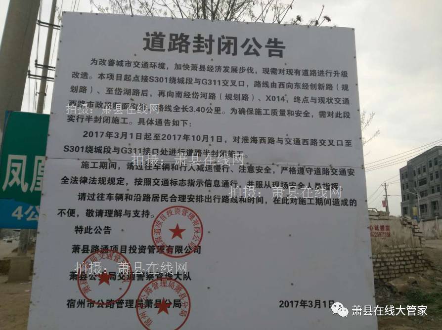 请过往车辆和沿路居民合理安排出行路线和时间,在此对施工期间造成的不便,敬请理解与支持。萧县在线网