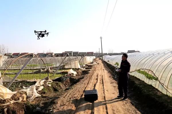 3月2日,人保财险徐州市分公司新引进的8架无人机在沛县张庄镇张楼村,集中对受损的上百亩设施大棚进行查勘。