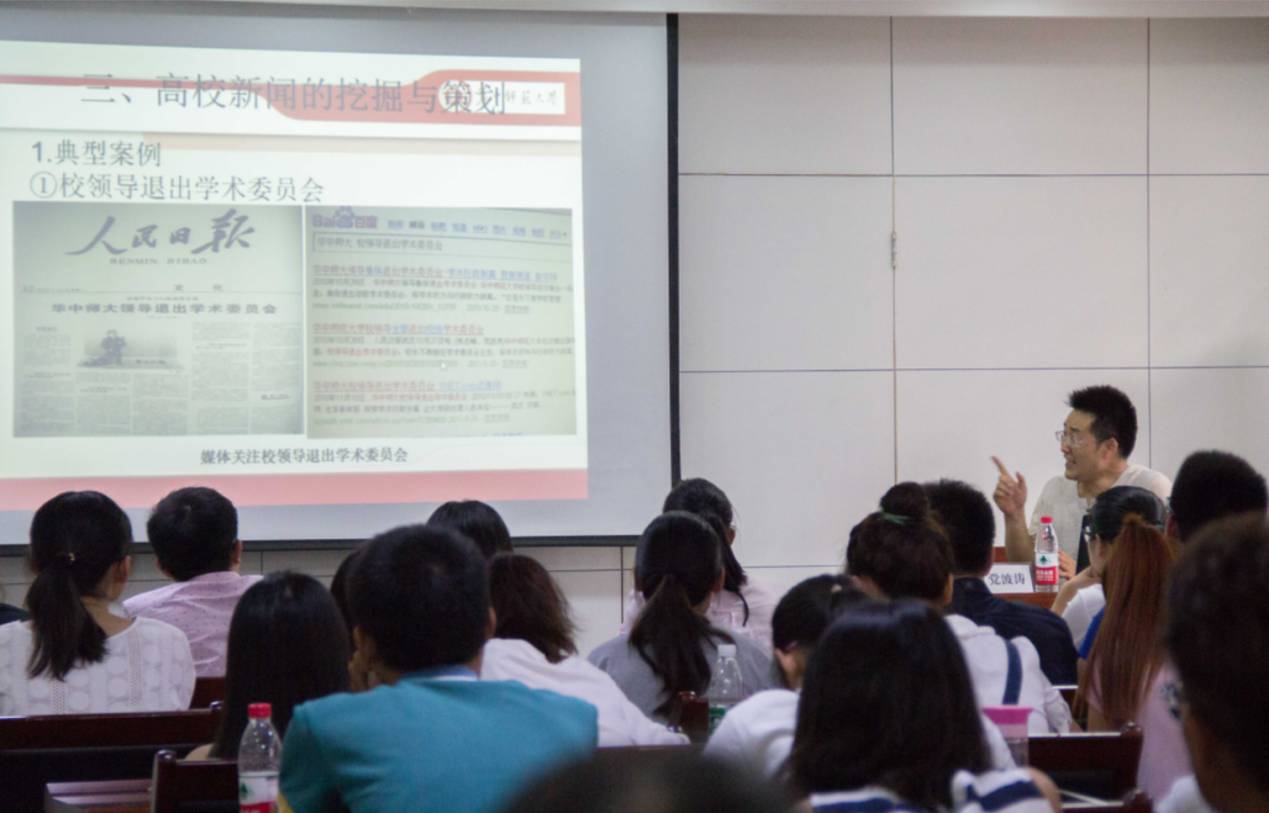 在关于“高校新闻的挖掘与策划”方面,党波涛用“校领导退出学术委员会”、“轮椅教授刘盛佳”、“音乐男孩李强”三个典型案例告诉大家校园新闻是有它的新闻价值的,作为校媒人要注意去发现和挖掘它。而校园新闻的新闻价值分为政治性、学术性、创新型、引领性、独特性和奇趣性,他说,新闻的判断就是新闻敏感性的问题,一名优秀的校园记者或通讯员必须具备新闻敏感性。