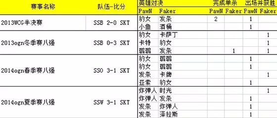 2014年S4预选赛,这是PawN在S4唯一单杀Faker的系列赛,三场每场都单杀了Faker,Faker在第三局也单杀了PawN。当时是Faker使用时光对亚索,线上战局优势。