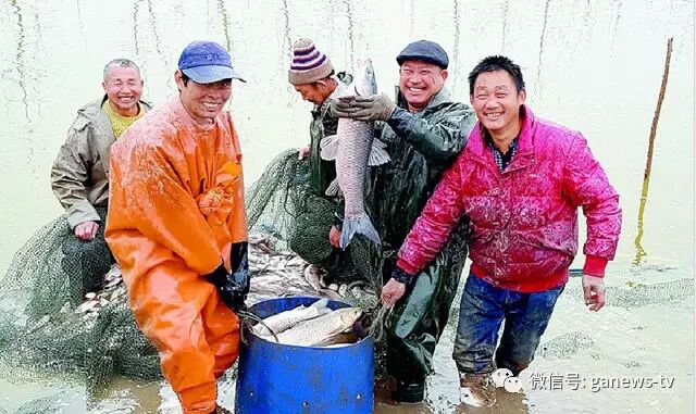 15日,斑竹垱镇学堂街村水产养殖户冉昌付(右一)满脸洋溢着丰收喜悦,他抓住春节前的大好销售时间,适时捕捞销售。近年,该县围绕“打造水产强县”总目标,渔业经济呈现持续健康发展态势。据统计,2016年全县水产养殖面积30万亩,水产品产量15.9万吨,实现产值28亿元,同比增5.7%。(视界网王文初摄)